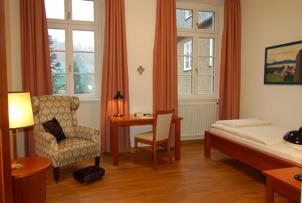 Gäste, die an Einkehrtagen und Kursen teilnehmen oder Zeiten der Stille verbringen möchten, wohnen in einem eigenen Bereich, dem Gastflügel St. Gilbert.