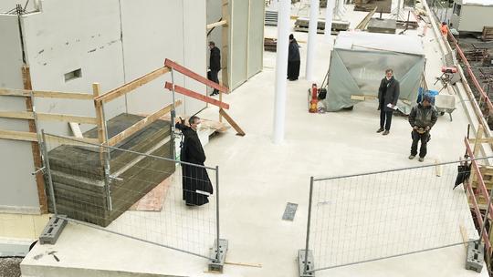 Pater Petrus Nowack OSB, Prior-Administrator der Benediktinerabtei, segnete das Gebäude. Er dankte seinen Mitbrüdern, den Architekten und Baufirmen, den Banken sowie auch Philipp Lohse, dem Geschäftsführer der Abtei, der im Sinne einer gelingenden Zusammenarbeit mit den Architekten für einen zügigen Projektfortschritt sorge. Baubeginn war im September 2020.