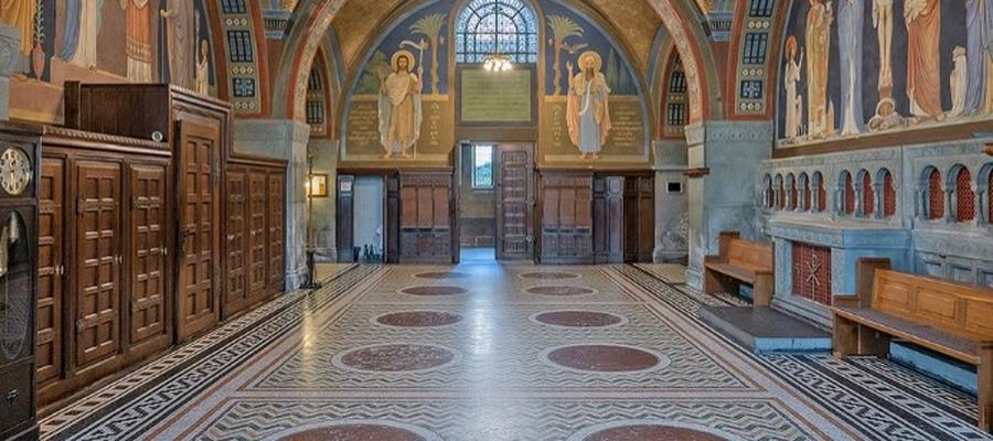 Nach der Wiederbesiedlung der Abtei durch Mönche der Abtei Beuron anno 1892 wurden viele Gebäude neu gestaltet, so auch die Sakristei im Sinne der Beuroner Kunst.