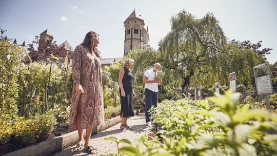 Der Klostergarten bietet eine große Auswahl an Stauden, Rosen, Kräutern und Obstgehölzen – von Apfelbäumen bis Weinreben.
